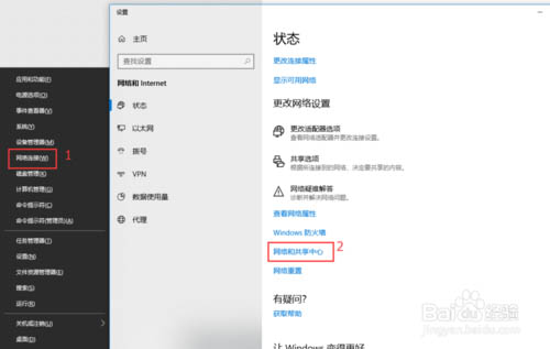 1、首先,按Win+X選擇“網(wǎng)絡(luò)連接”,點擊右下方的“網(wǎng)絡(luò)和共享中心”