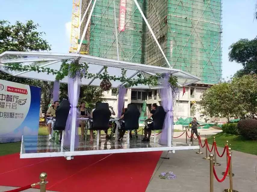 空中餐廳是能在高空就餐的餐廳。整個餐桌固定在金屬框架上,由一臺巨型起重機吊在30米左右高空。每次可接待8名顧客。除了享受美食之外,還可以俯瞰整個城市的美景。