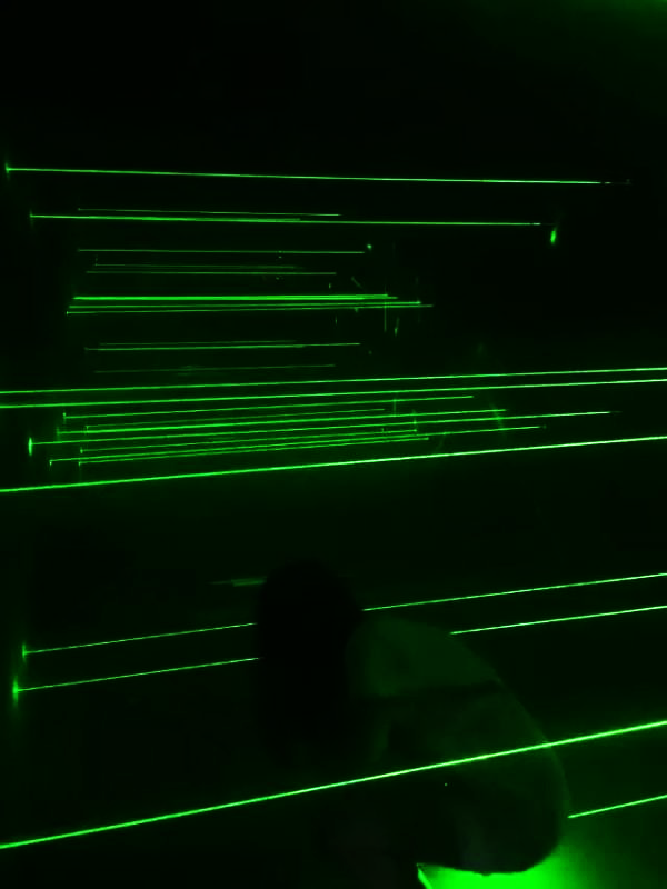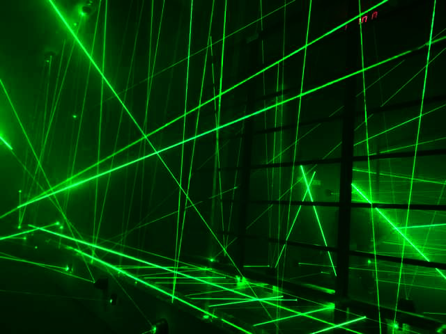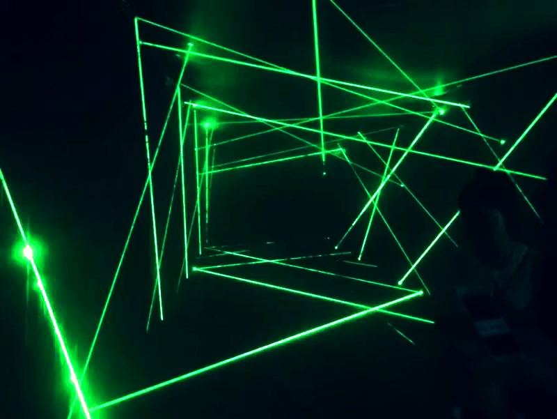 激光密室逃脫,使用特殊激光裝置,通過電子電路控制的一系列鐳射發射器和接收器,組成鐳射光網。