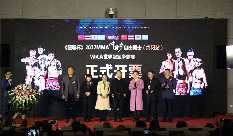 五洲風(fēng)云激蕩,世界矚目綿陽。由中國囍聯(lián)集團股份有限公司冠名的“囍聯(lián)杯”2017MMA“中國夢”自由搏擊(綿陽站)WKA世界冠軍爭霸賽,12月4日在綿陽市科創(chuàng)區(qū)創(chuàng)新中心二期舉行了盛大的新聞發(fā)布會及開票儀式,獨家披露了大賽的背景、賽事安排、商務(wù)合作、票務(wù)等諸多信息。