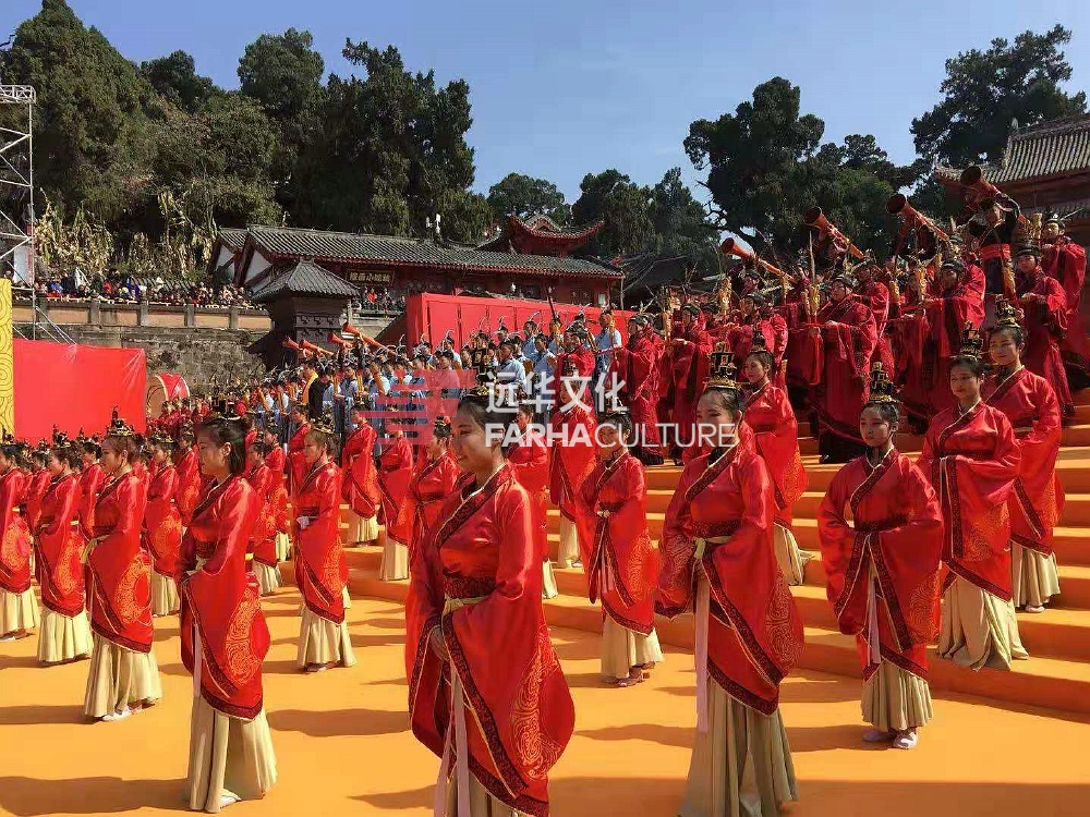 大典初獻(xiàn)禮,41名學(xué)子代表身著漢服向文昌帝君恭獻(xiàn)書卷,演繹誦讀“善書三圣經(jīng)”之一的《文昌陰騭文》節(jié)選。終獻(xiàn)禮時(shí),20位兩岸各界人士代表向文昌帝君敬獻(xiàn)了花籃,中國詩歌學(xué)會(huì)副會(huì)長劉向東敬誦《己亥年文昌祭祀大典祭文》,表達(dá)對文昌帝君的追思和尊崇。最后,在大型祭祀樂舞中,青年歌唱家李暉演唱的《頌文昌》,掀起兩岸民眾共祭共仰文昌、祈福中華民族偉大復(fù)興的高潮,在飽含深情的歌聲中,文昌祭祀大典圓滿禮成。