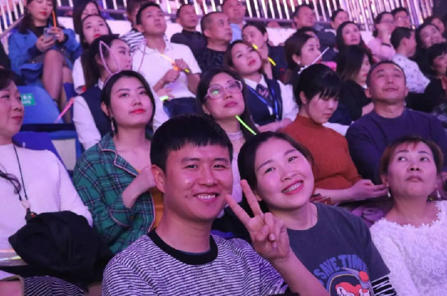 19:58分,在全城人民的熱切期待中,演唱會正式開始。炫酷的燈光舞美、音響,開場引得現場吶喊聲一片!觀眾們歡呼的叫喊、熒光閃爍的繽紛,現場已然變成一片歡樂的燈海。