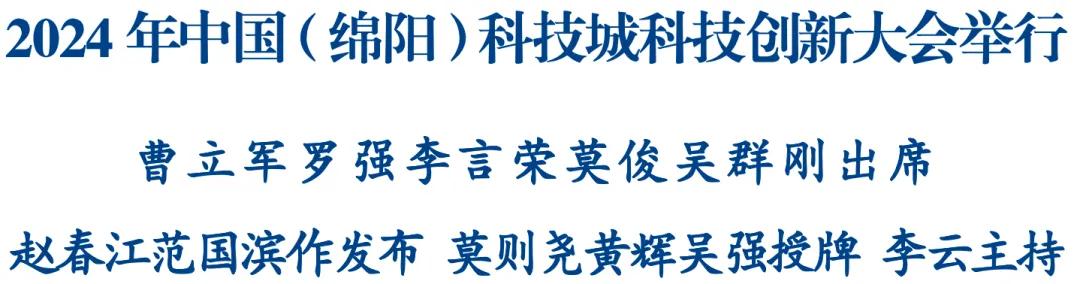 5月29日,2024年中國(綿陽)科技城科技創新大會舉行,省委常委、市委書記曹立軍出席并講話,省人大常委會副主任羅強為天府產業技術研究院揭牌,中國工程院院士、西北工業大學黨委書記李言榮作主旨演講,中國空氣動力研究與發展中心副主任莫俊出席,中國工程院院士、中國人工智能學會黨委書記趙春江發布《全國人工智能應用場景創新報告與榜單》,中國工程院院士、市科協主席范國濱發布綿陽市2023年度十大科技進展、十大創新產品、十大創新企業,中國科協副主席、中國工程物理研究院副院長莫則堯,中國工程院院士黃輝、吳強分別為獲評單位授牌。